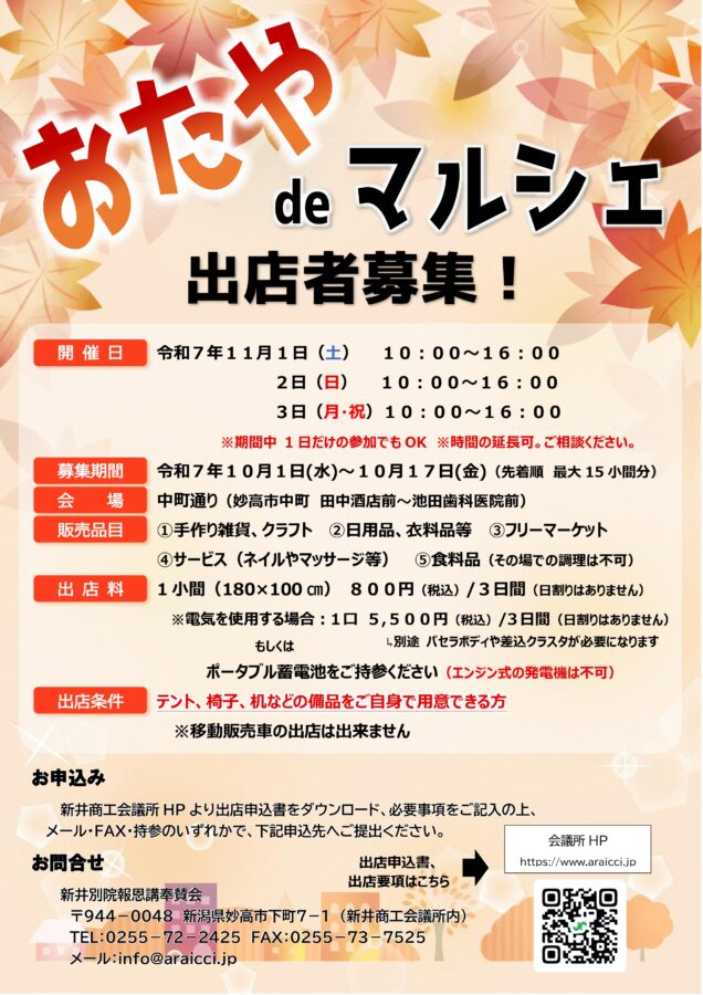 2025年11月1日(土)~3日(月・祝)開催「おたやdeマルシェ」出店者募集のお知らせ